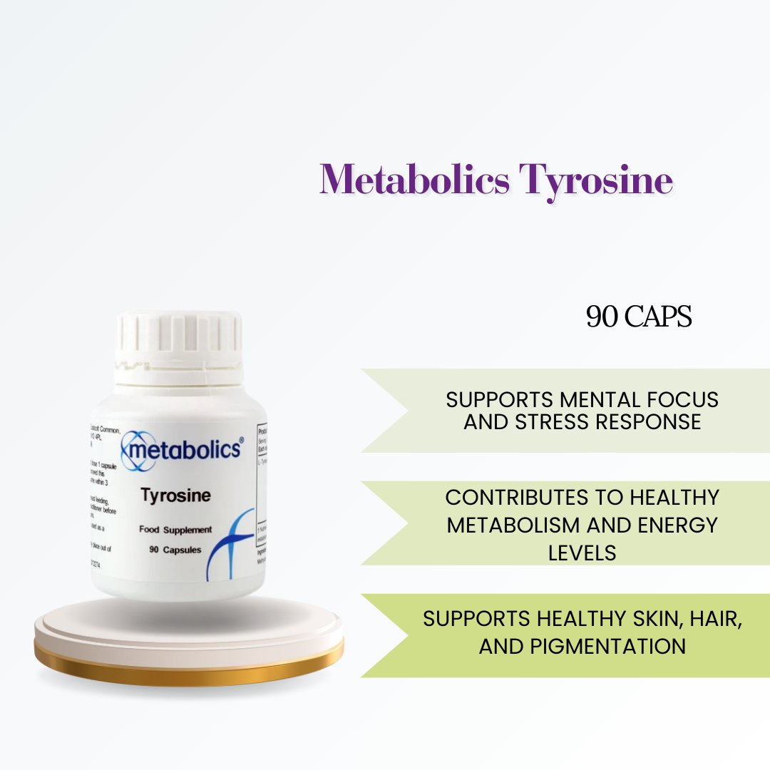 As a precursor to thyroid hormones T3 and T4, tyrosine plays an important role in supporting normal metabolism, energy production, and overall metabolic health. -