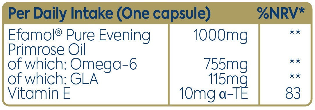 Efamol’s unique Rigel Evening Primrose seed contains up to 33% more GLA† (115mg per 1000mg) than other standard Evening Primrose Oils available.