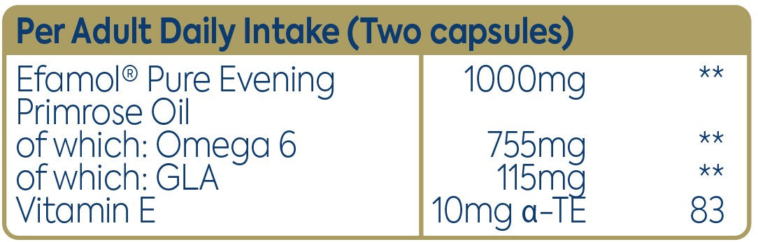 Efamol’s unique Rigel Evening Primrose seed contains up to 33% more GLA† (115mg per 1000mg) than other standard Evening Primrose Oils available.